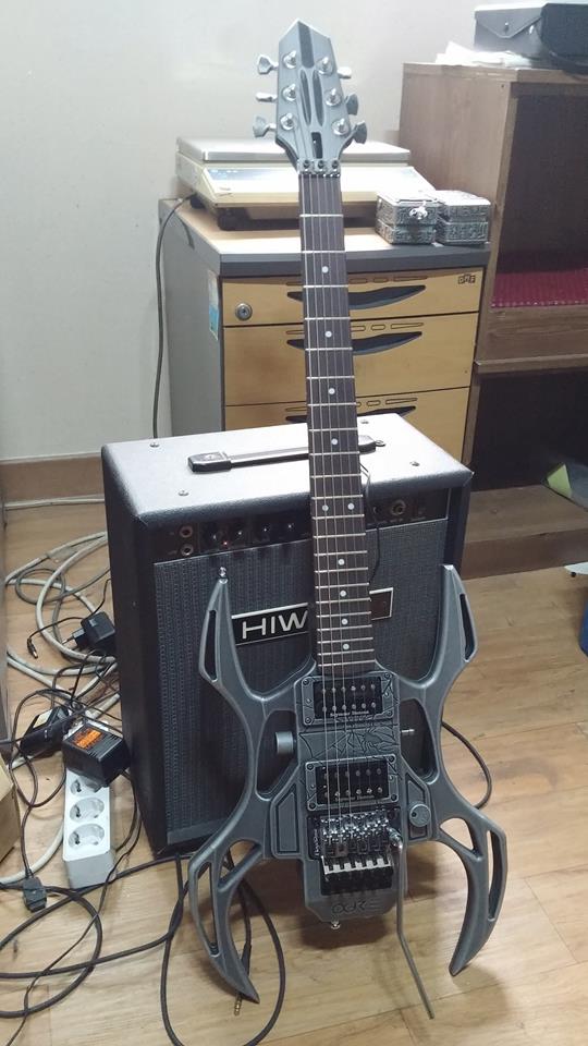 바디는 알루미늄을 CNC 시스템으로 깎아 내어 만들고 메이플넥을 장착했습니다.